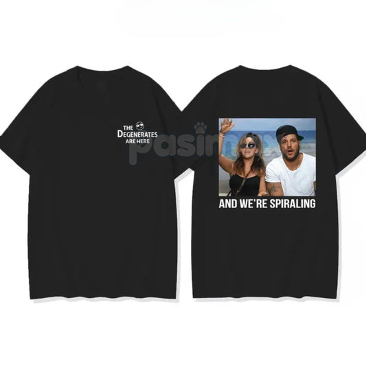 "And We're Spiraling" Meme T-Shirt - "The Degenerates Are Here" Graphic Tee, Funny Jersey Shore Slogan Shirt, Unisex Party Top
