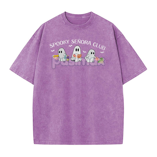 "Spooky Señora Club" Vintage Acid Wash T-Shirt – Unisex Graphic Shirt, Retro Vibe
