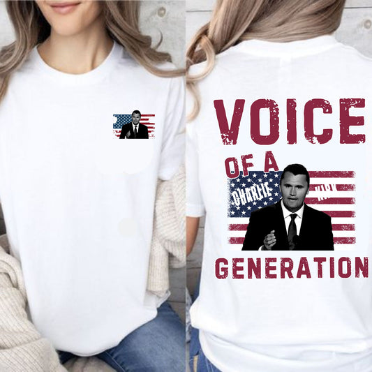 "Voice of a Generation" Charlie Kirk T-Shirt - Double-Sided Unisex Tee, Political Statement Apparel