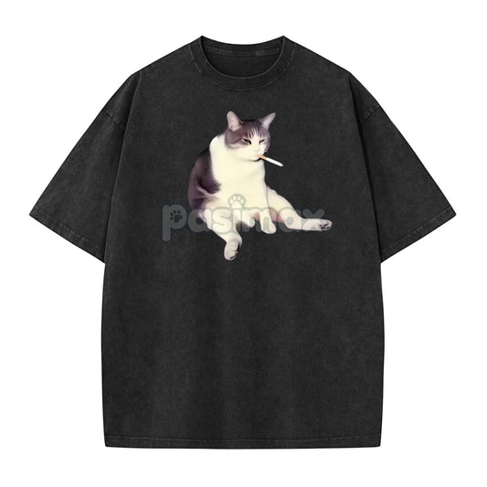 'Cat Smoke' Funny Animal Graphic Tee – Unisex Streetwear Cotton Comfort Shirt, Menswear Womenswear Cool Cat Tee