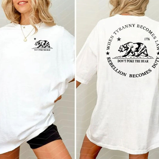 "Don't Poke the Bear" & "Rebellion Becomes Duty" T-Shirt - 2-Sided Political Statement Tee, Unisex Anti-Tyranny Apparel