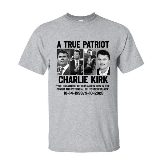 Charlie Kirk "Freedom & True Patriot" T-Shirt - American Statement Tee, Political Fan Apparel