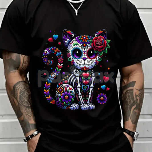 Catrina Sugar Skull T-Shirt - Día de Muertos / Cinco de Mayo Cat Tee, Unisex Vibrant Mexican Graphic Apparel