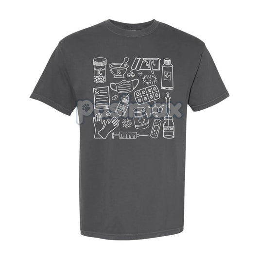 Pharmacy Doodle T-Shirt – Pharmacist Technician Gift, Cute Rx Tech Shirt, Funny Pharmacy Student Tee
