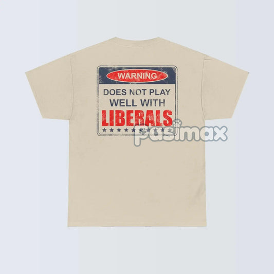 Warning: Does Not Play Well with Liberals T-Shirt - Patriotic Conservative Graphic Tee, Bold Statement Apparel
