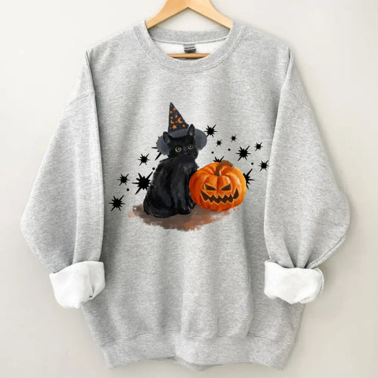 Spooky Cat Crewneck – Vintage Wash Halloween Cat Sweatshirt