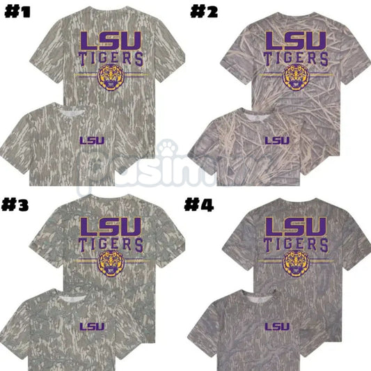 LSU Tigers Camo T-Shirt - Mossy Oak Original Bottomland Tee, Unisex College Fan Apparel