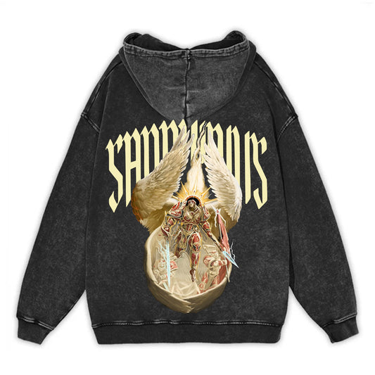 Sanguinius, Primarch of Blood Angels Hoodie – New Washed Fabric Pullover for Wargame Fans & Warhammer Collectors
