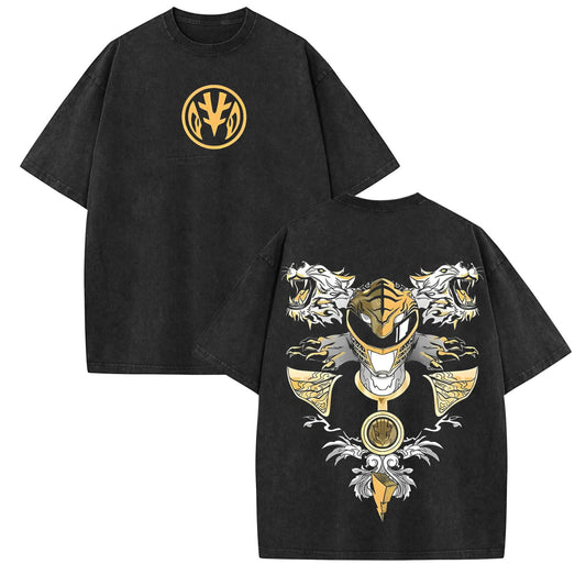 Mighty Morphin Power Rangers T-Shirt – Green, White, Red Ranger Washed Cotton Tee