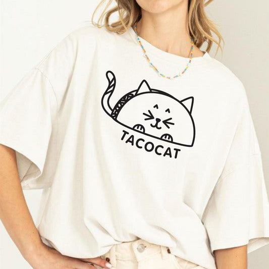 "Tacocat Backward Is Tacocat" Tee - Funny Food & Cat Graphic Shirt, Clever Palindrome Apparel