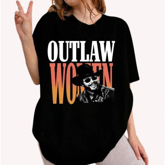 Hank Jr "Outlaw Women" Tee - Retro Western Country Music Graphic Shirt, Vintage Bocephus Apparel
