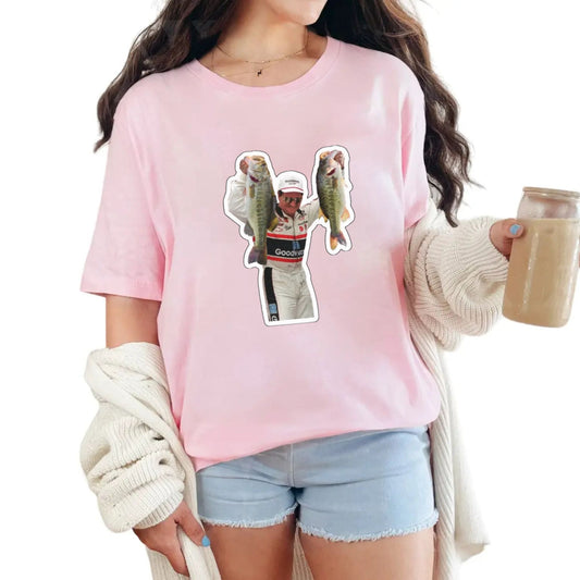 Dale Earnhardt Fishing Graphic Tee - Bass Angler & NASCAR Legend Shirt, Vintage Racing Apparel
