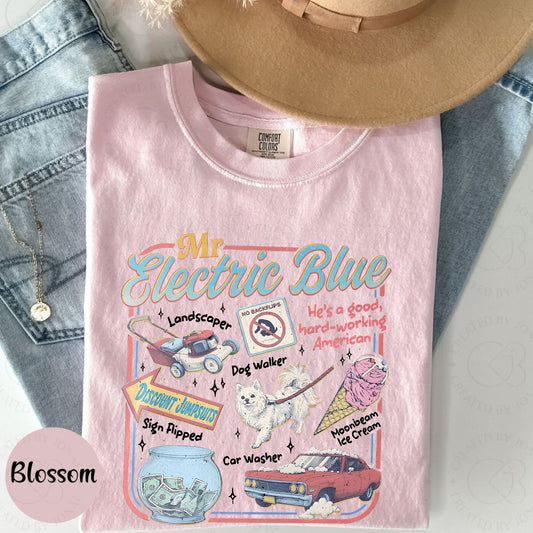 Retro America Band Tee – 2025 Concert Tour Merch, Vintage-Inspired Mr. Electric Blue Shirt, Classic Folk-Rock Fan Apparel