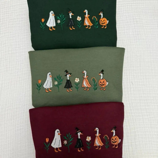 Spooky Goose Halloween Sweatshirt – Funny Embroidered Crewneck