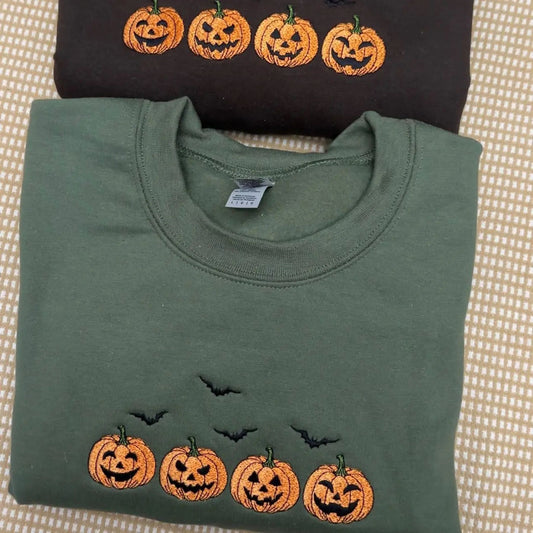 Embroidered Halloween Pumpkins & Bats Sweatshirt – Spooky Season Crewneck