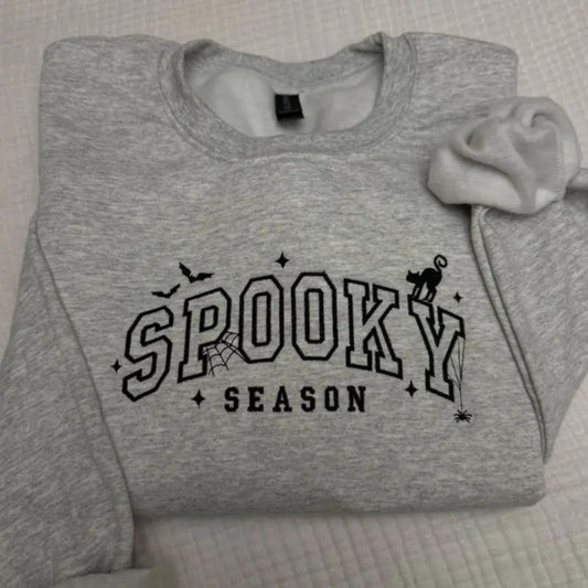 Spooky Season Halloween Cat Bats Spiderweb Embroidered Spooky Season Sweatshirt