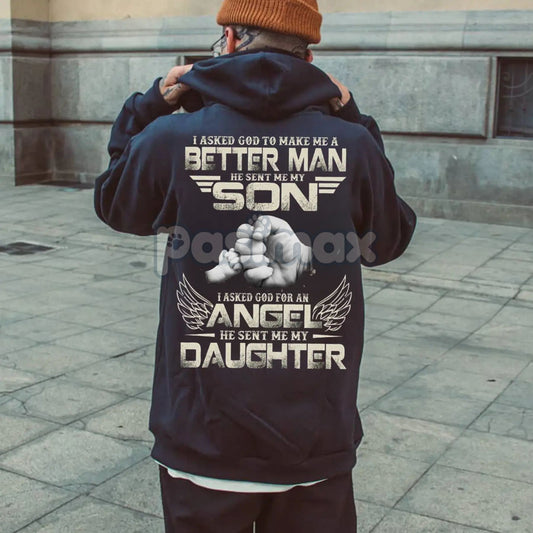 Dad Hoodie – "God Made Me a Better Man with My Son" Pullover, Christian Fatherhood Gift