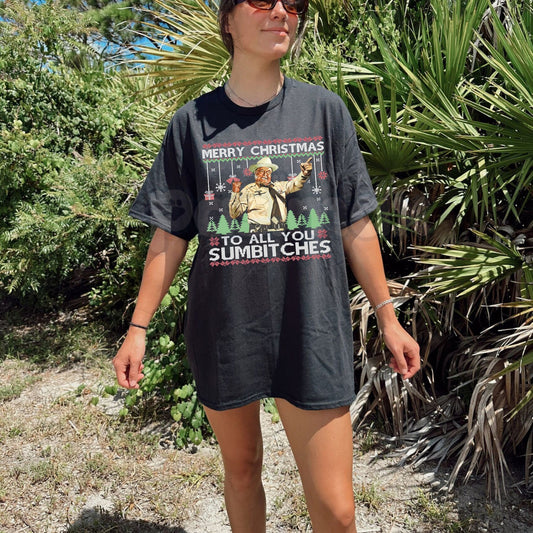 Buford T. "Merry Christmas, You Sumbtches" T-Shirt - Funny Outlaw Christmas Tee, Retro Movie Holiday Graphic, Unisex Comedy Film Apparel