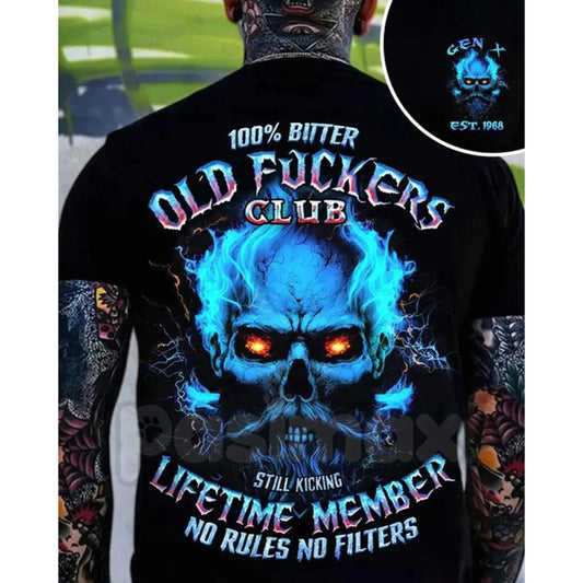 Crazymoda Generation X 100% Bitter Old F*ckers Club Custom Year Skull T-shirt - Rude Gen X Slogan Tee, Sarcastic Old Fart Humor Apparel, Custom Birth Year Gift