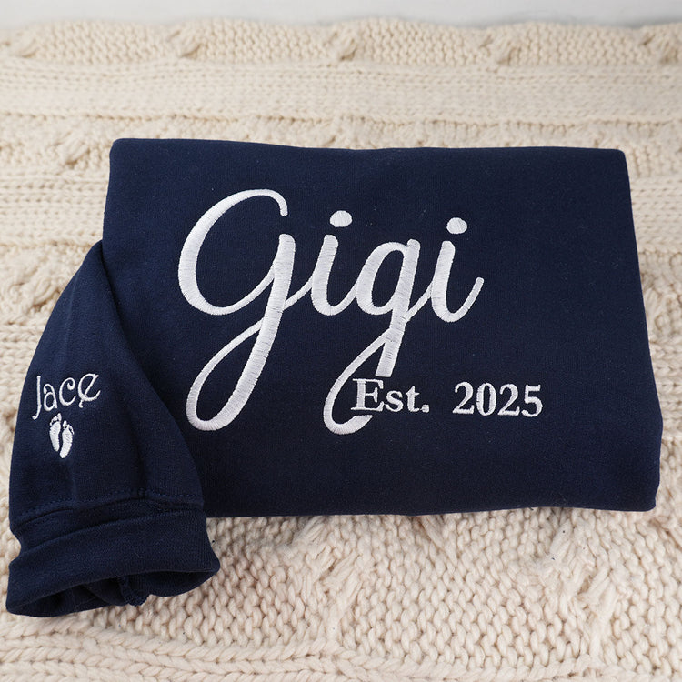 Custom Embroidered Gigi Sweatshirt or Hoodie with EST Year – Personalized Gift for Grandmothers