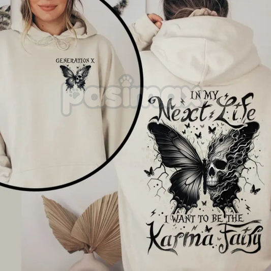 Karma Fairy Skull Butterfly Hoodie – Custom Generational Pullover, Gen X Baby Boomers Millennial Gift