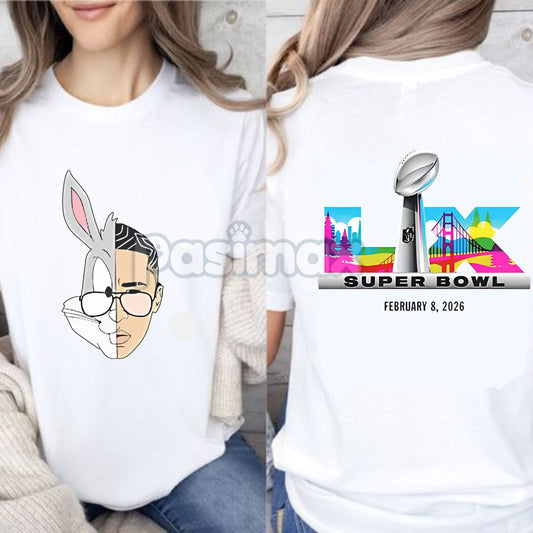 Super Bowl 2026 LIX Graphic T-Shirt - Bugs Bunny Half Face Tee, February 8, 2026 Sports Nostalgia Shirt
