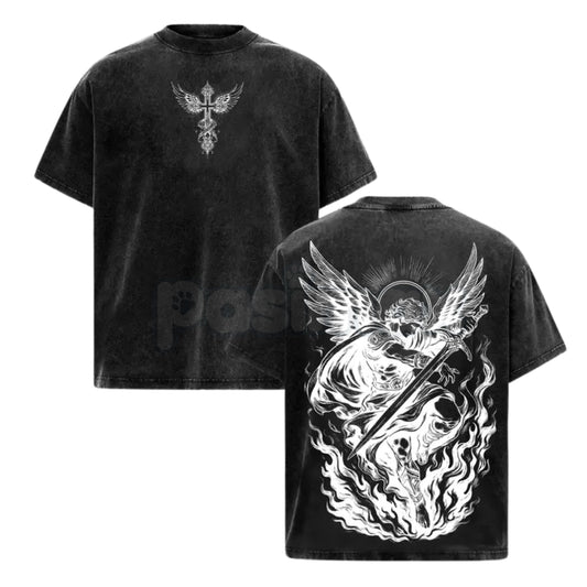 Archangel Michael Vintage Washed T-Shirt – Saint Michael Christian Streetwear Graphic Tee