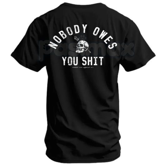 "Nobody Owes You Shit" Skull Men’s T-Shirt - Rugged Hard-Work Graphic Tee, Self-Reliance Motivational Skull Shirt, Premium Heavyweight Unisex Streetwear, Biker Style Stoic Wisdom Top, Aggressive Gym & Lifting Apparel
