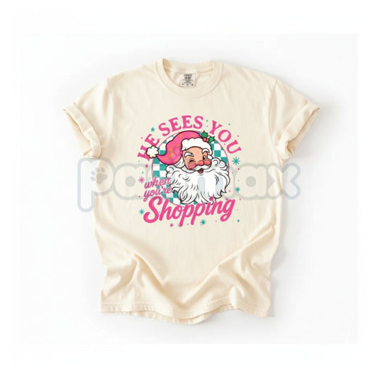 'We See You When You're Shopping' Comfort Colors® T-Shirt – Funny Christmas Santa Spy Tee, Holiday Shopping Humor Shirt