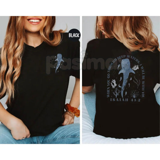 "When You Go Through Deep Waters" Christian T-Shirt - Isaiah 43:2 Inspirational Faith Tee, Scripture Verse Religious Graphic Shirt, Premium Heavyweight Hope & Encouragement Top, Minimalist Christian Gift for Women & Men, Ocean Inspired Spiritual Apparel