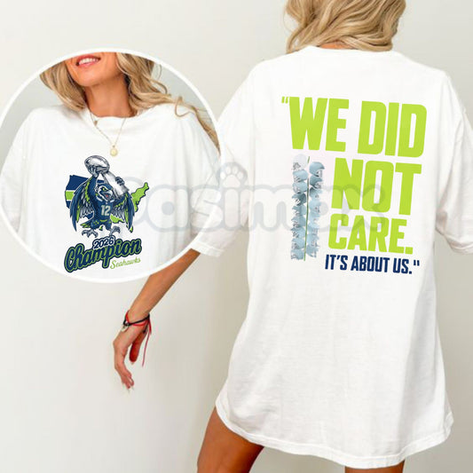 Seahawks 2026 "We Did Not Care" T-Shirt - Seattle Football Championship Fan Tee, Defiant 12th Man Graphic Shirt, Premium Heavyweight Unisex Hawks Apparel, 2026 Season Commemorative Top, Seattle Streetwear Sports Gift