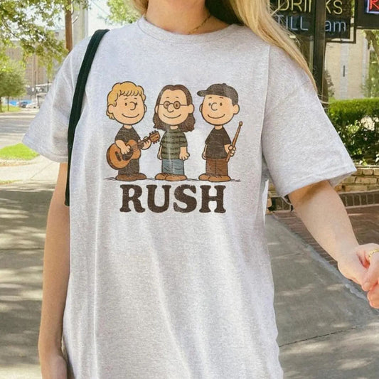 Rush Band Cartoon T-Shirt - Retro Rock Music Fan Tee, Cute Vintage Graphic Shirt