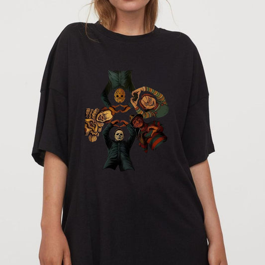 "Horror Friends" Halloween T-Shirt - Iconic Serial Killers Graphic Tee, Y2K Nostalgia Apparel