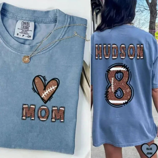 Custom Football Mom Shirt – Flag Football Season Mama Tee with Kids Name & Jersey Number, Comfort Colors Sports Mom Gift