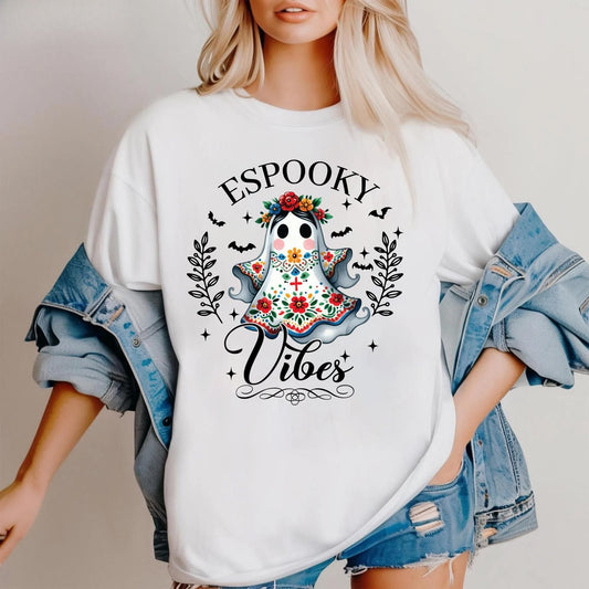 Cute Ghost "Boo" Halloween T-Shirt - Drinking Mexican Ghost Graphic Tee, Spooky Season Apparel