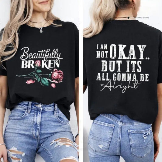"Beautifully Broken, Not Okay" T-Shirt - Trendy Mental Health Awareness Tee, Empowering Women's Gift