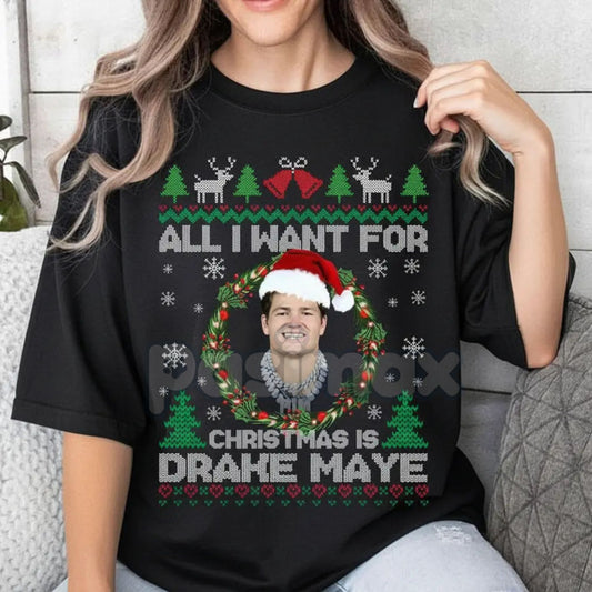 Drake Maye New England Christmas T-Shirt - Patriots Unisex XMAS Gift, New England Football Tee, Casual NFL Fan Merch