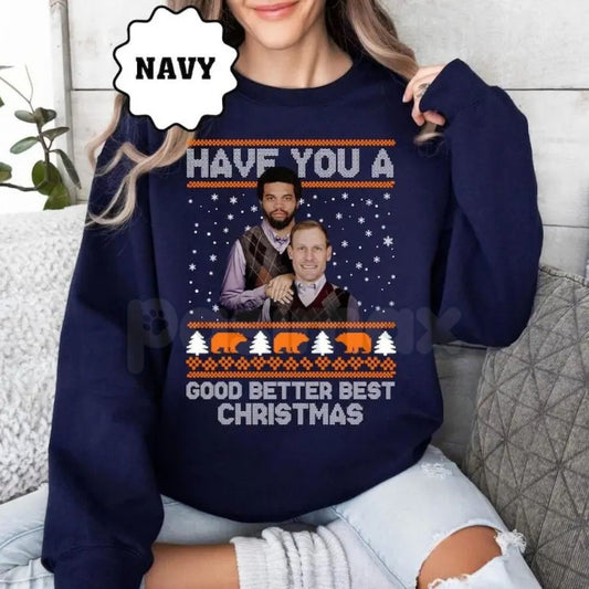 Good Better Best Christmas Football T-Shirt - Funny Ugly Sweater Pattern Tee, Holiday Game Day Apparel, Football Fan Seasonal Graphic Shirt