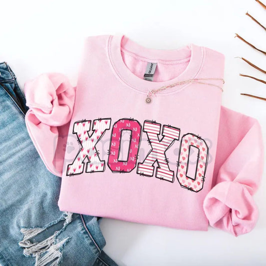 Preppy Valentines Day Sweatshirt | XOXO Sweater | Women's Retro Valentine Crewneck | Aesthetic Preppy Valentine Outfit | Trendy Love Hearts Graphic Jumper