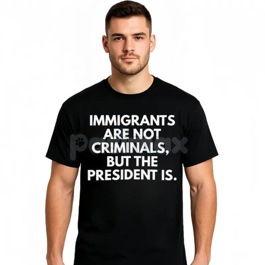 "Immigrants Are Not Criminals But The President Is" T-Shirt - Funny Political Protest Slogan Tee, Unisex Activist Apparel, Immigration Rights Gift