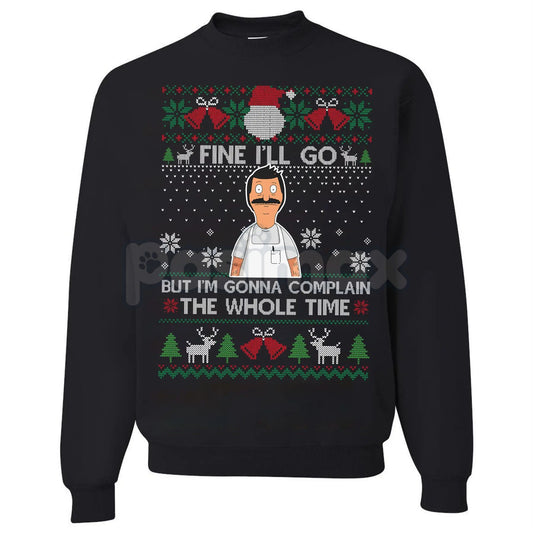 "Fine I'll Go But I'm Gonna Complain The Whole Time" Ugly Christmas Sweatshirt | Funny Relatable Holiday Jumper | Introvert Xmas Gag Gift