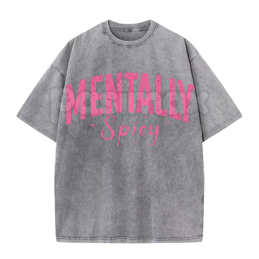 Mentally Spicy Washed T-Shirt – Funny Sarcastic Quote Tee, Vintage Oversized Graphic Shirt