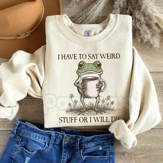 Funny Frog Sweatshirt | I Have To Say Weird Stuff Or I Will Die Crewneck | Weirdcore Frog Meme Jumper | Sarcastic Relatable Frog Gift