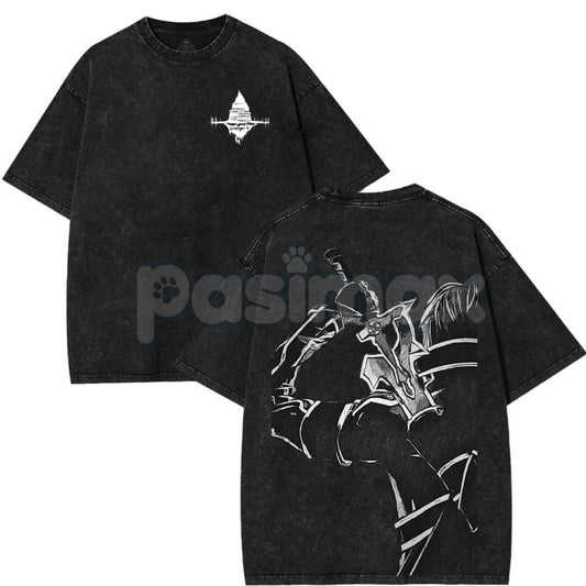 Sword Art Online Kirito B&W V1 T-Shirt – Vintage Washed Oversized Anime Manga Graphic Tee