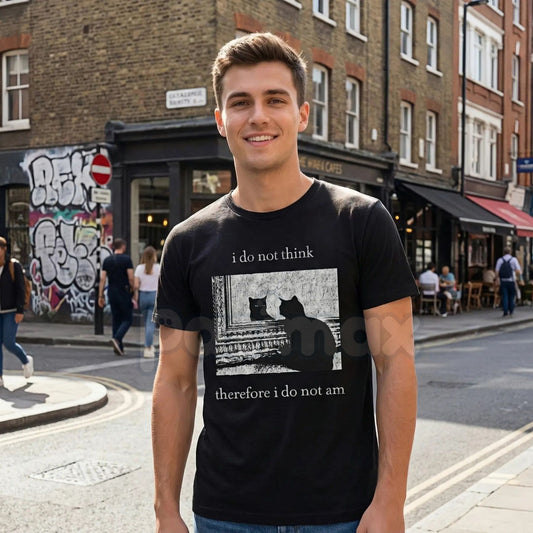 "I Do Not Think" Cat Tee - Goth Aesthetic Graphic T-Shirt, Funny Surreal Cat Humor, 90s Vintage Grunge Clothing