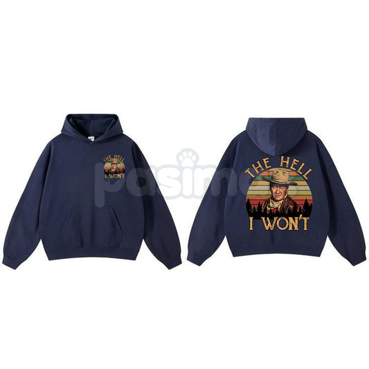 The Duke "The Hell I Won't" John Wayne Hoodie – Vintage Western Legend Pullover, Rugged Cowboy Graphic Apparel, Unisex