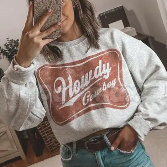 Howdy Cowboy Crewneck Sweatshirt | Western Graphic Jumper | Yeehaw Retro Rustic Shirt | Cowgirl Aesthetic Country Gift