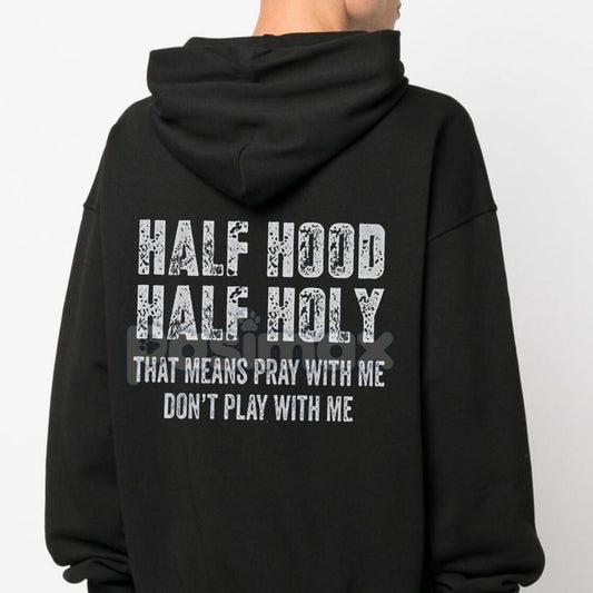 Half Hooded Half Holy Hoodie – Duality Street Style Pullover, "Play With Me Don't Play With Me" Attitude