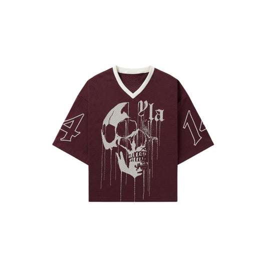 Drippy Skull Streetwear Mesh Jersey – Unisex V-Neck Sporty Tee, Breathable & Versatile