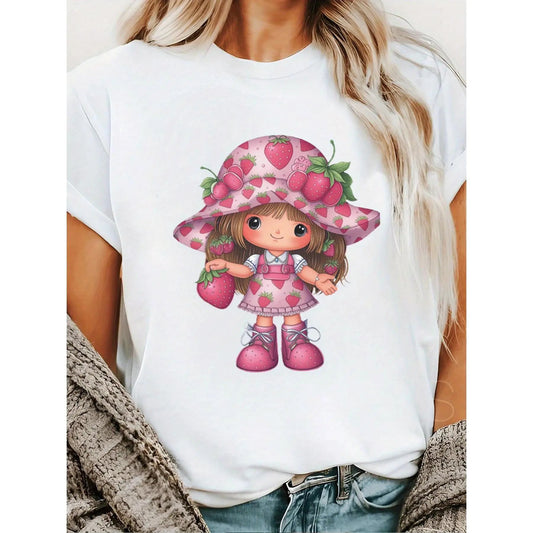 Cute Strawberry Print Short Top T-Shirt - Women's Loose Fit Summer Wear, Casual Graphic Tee